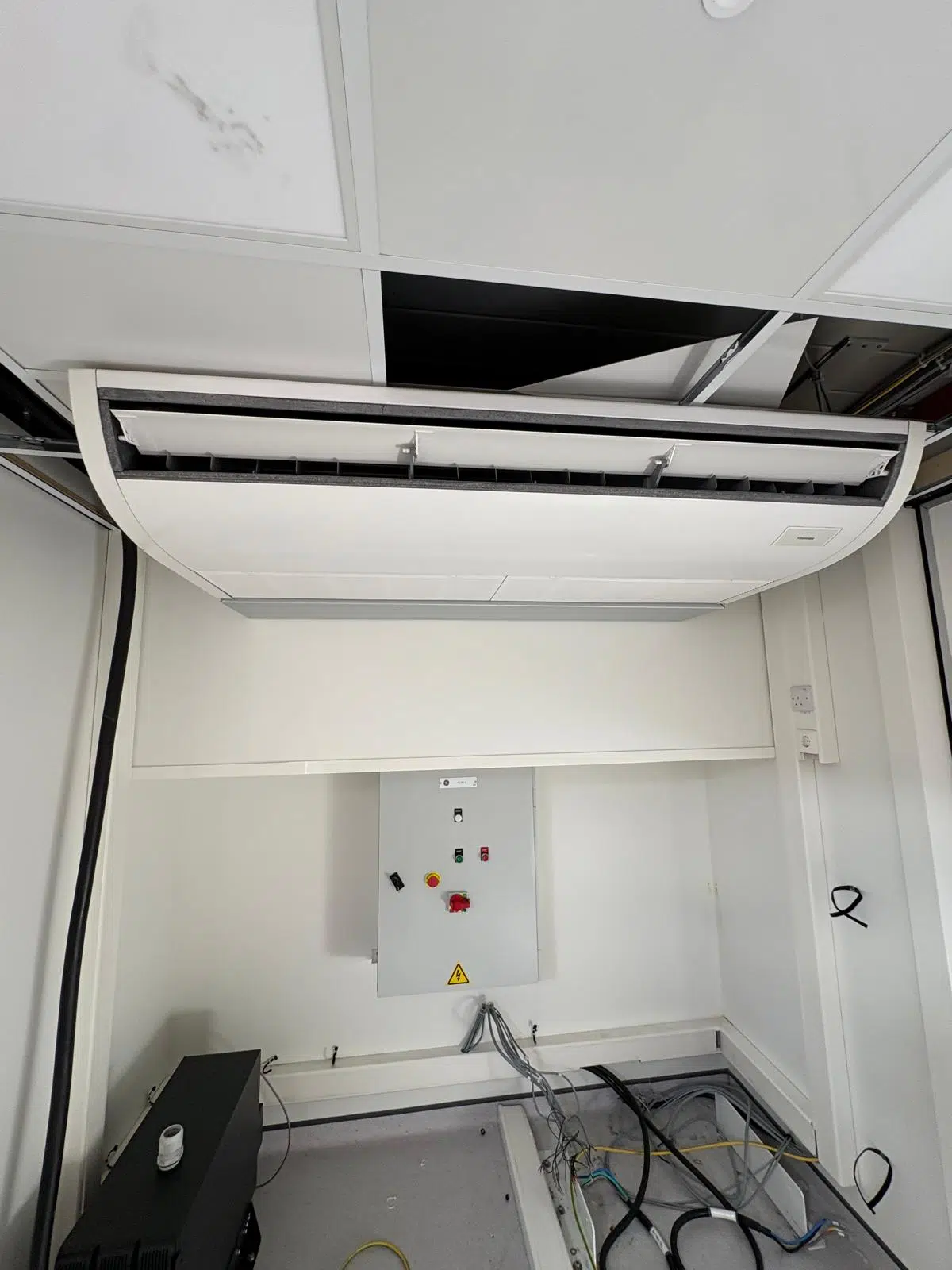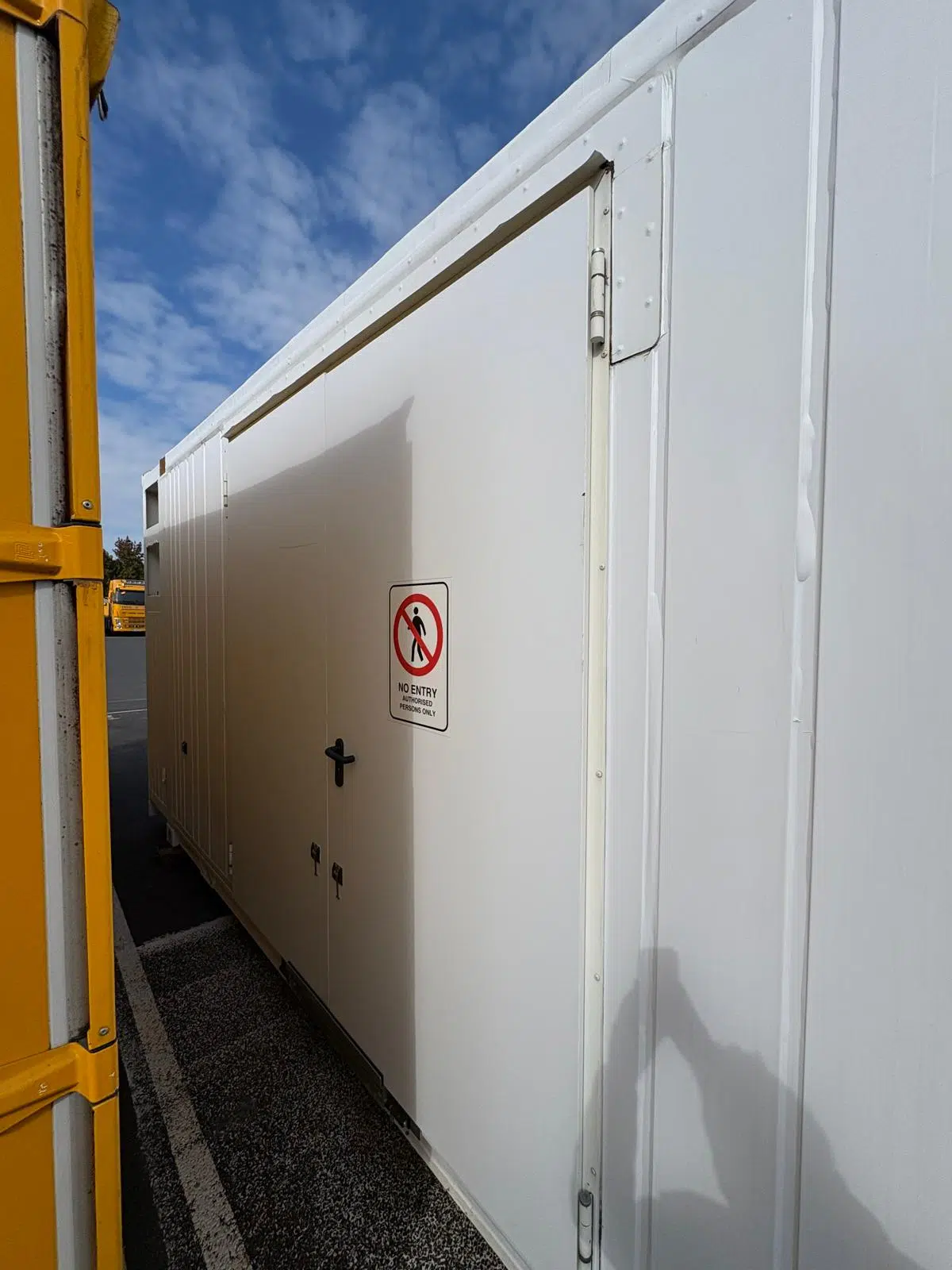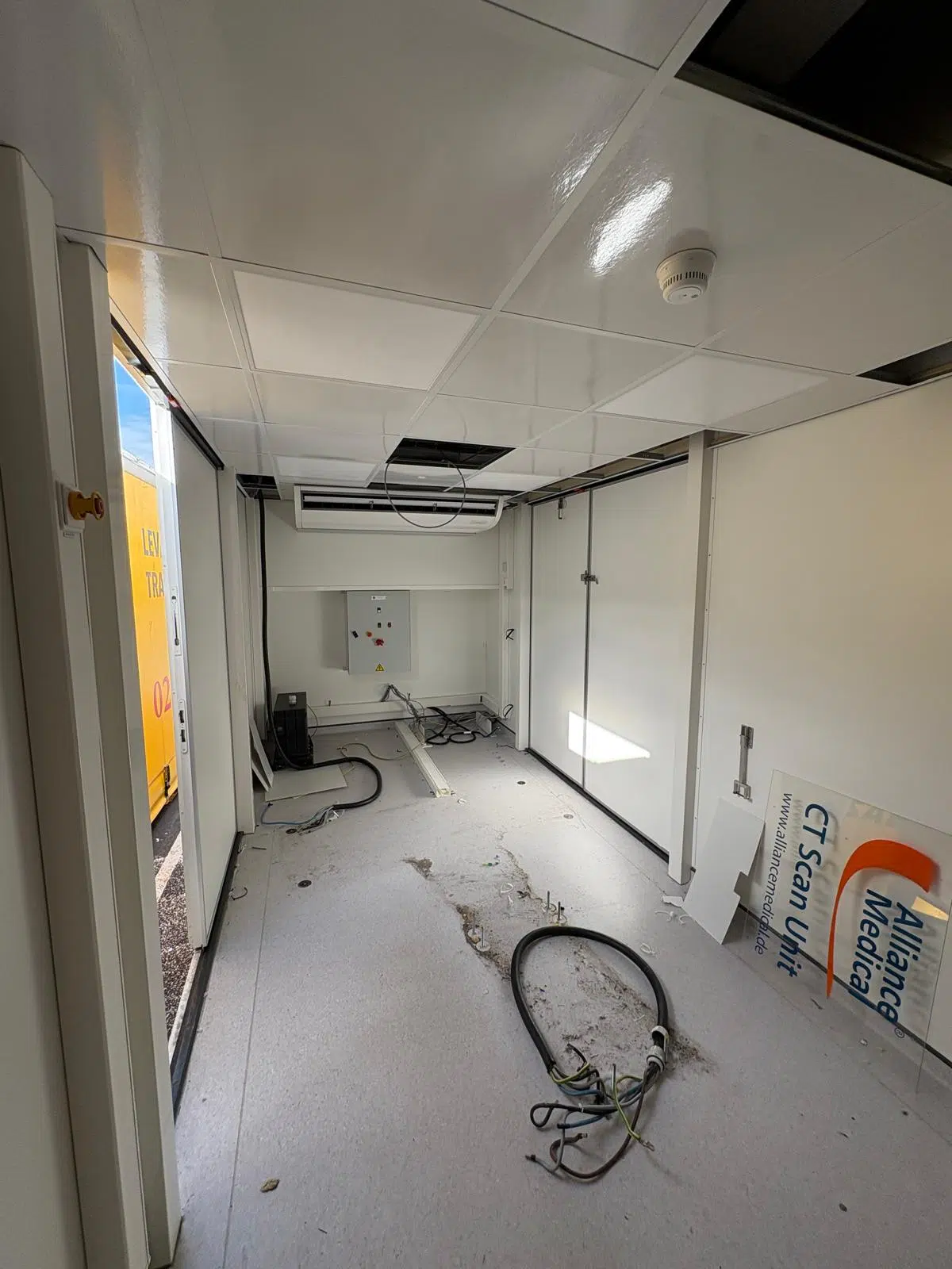 Disponible immédiatement et visible sur notre, un container de 45 pieds High Cube de type isotherme ayant servi d’espace santé avec Scanner.